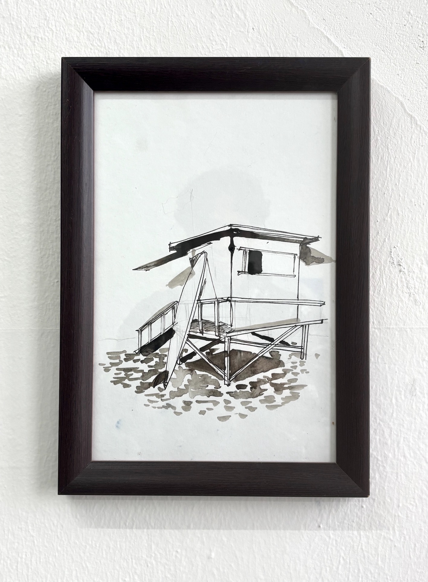 BAYWATCH TINY HOUSE Technik TÜSCHE AUF PAPIER , GERAHMT Grösse 24x34 cm. Leihgebühr 1ste Woche €24 2te Woche €14 Ab 3te Woche €8 Vorherige BLUMENSTRÄUSS Nächste Psychodelisches Grafik